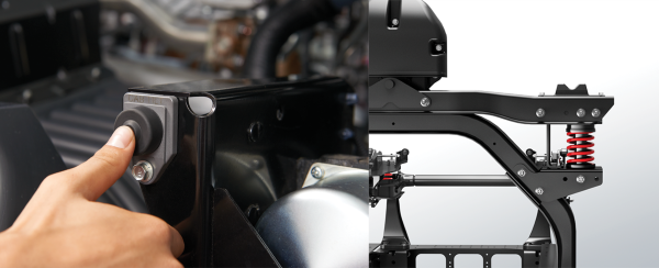 Cabin thiết kế kiểu lật, tích hợp thanh xoắn và hệ thống khóa an toàn, giúp thao tác bảo dưỡng dễ dàng. Kết cấu cabin chắc chắn với các gân chịu lực trên cửa, tăng cường độ bền và bảo vệ tối ưu cho người lái.