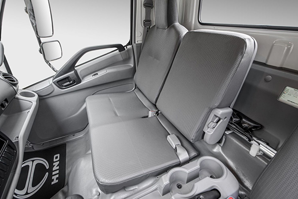 Nội thất ghế da 3 chỗ ngồi, phanh tay an toàn có thể gập lên xuống. Hộp số 6 số tiến và 1 số lùi. Các phương tiện giải trí được trang bị trên dòng xe Hino này bao gồm radio, bluetooth, USB. Máy lạnh cao cấp Denso 2 chiều có chế độ sưởi kính.