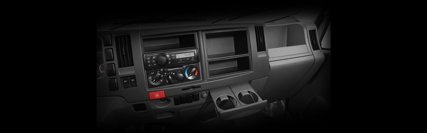 Nội thất xe tải Isuzu QKR270 rộng rãi cho 3 người ngồi, thiết kế hài hòa và tiện nghi. Taplo sử dụng chất liệu cao cấp, chỗ để chân thoáng, tay lái trợ lực nhẹ, tích hợp điều hòa cabin, hệ thống âm thanh, kính điện và ghế bọc nệm êm ái – mang đến cảm giác thoải mái trong suốt hành trình.